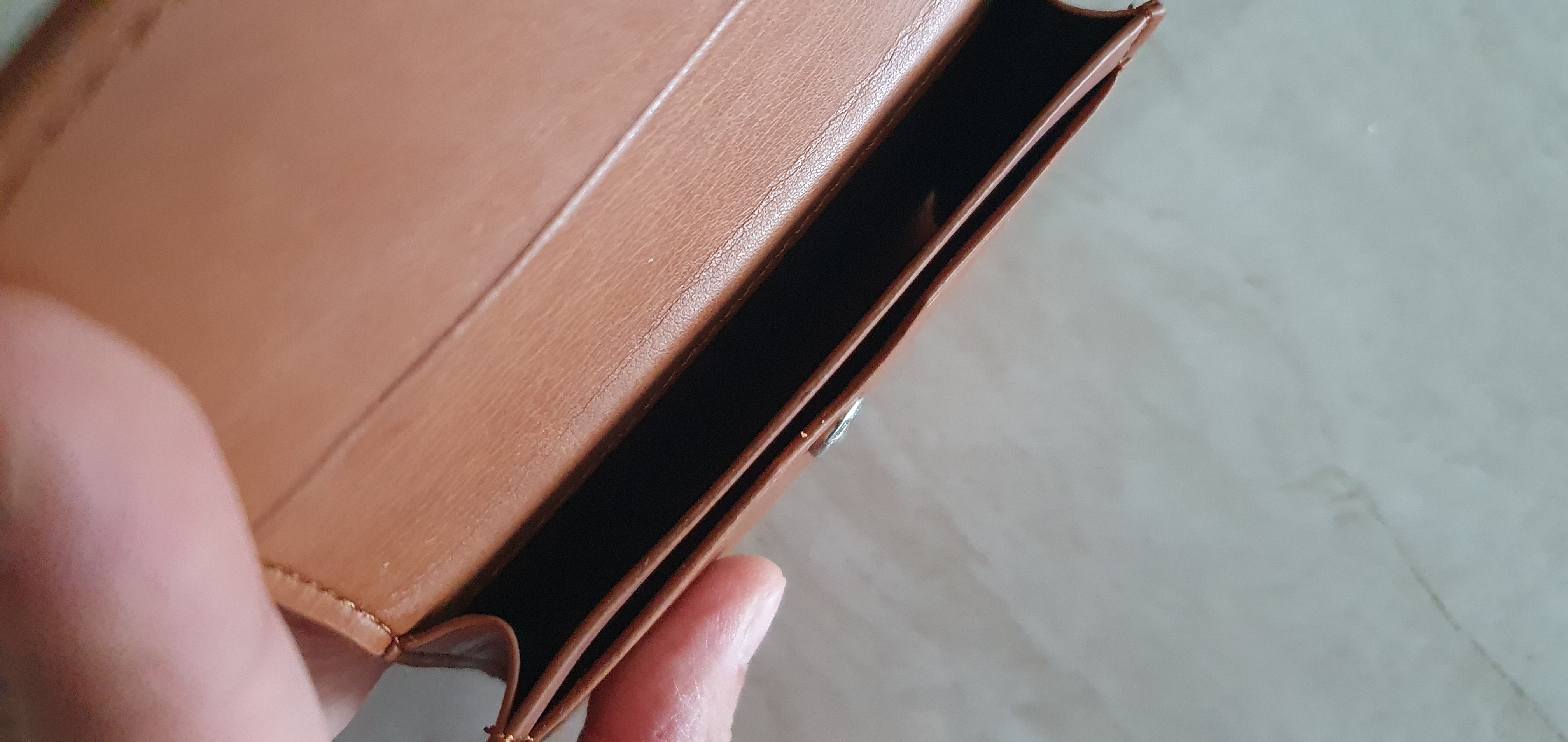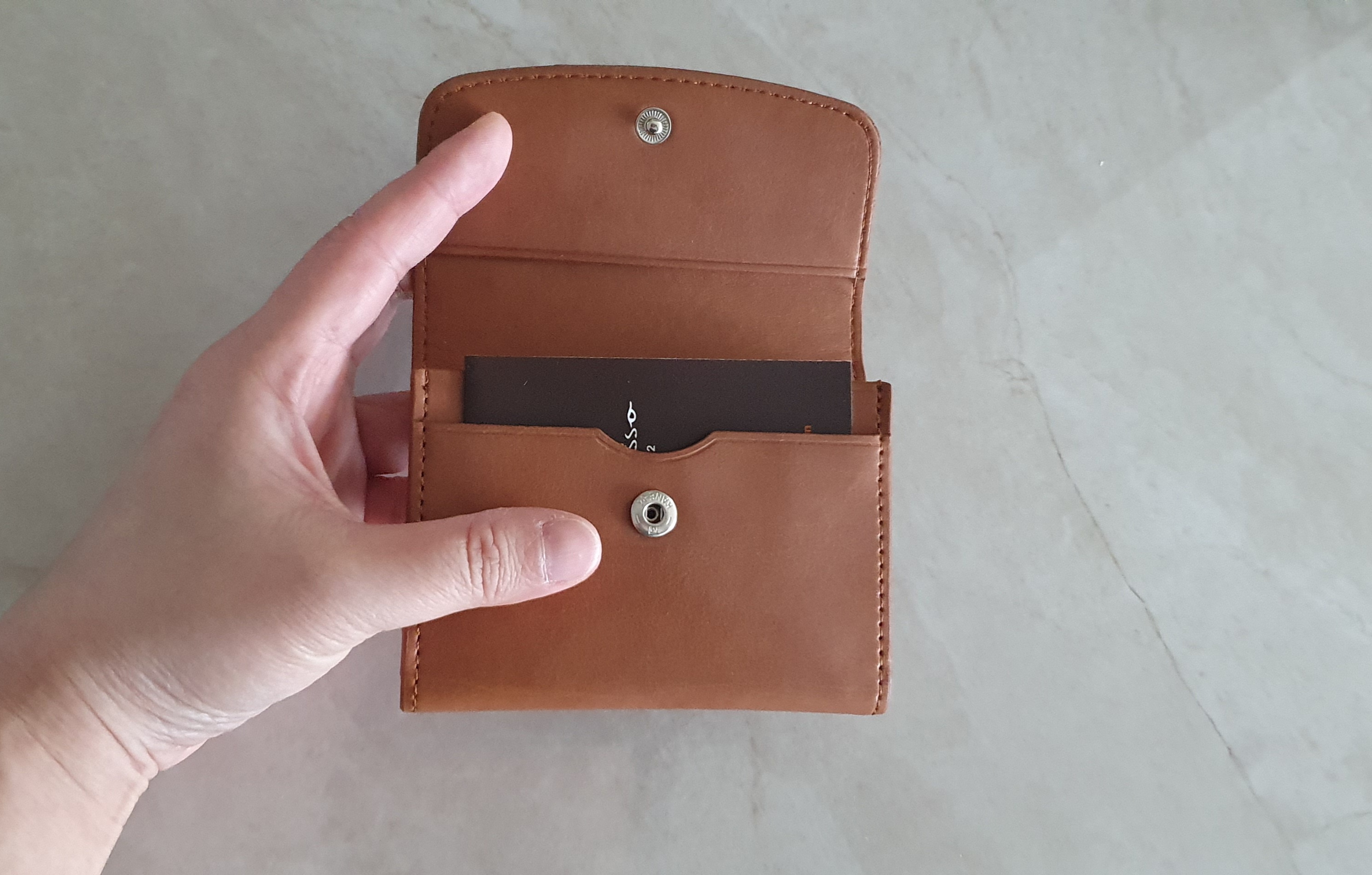 지갑 앞 면에 브랜드 로고가 음각돼 있어요. 지갑 소재는 리얼 가죽은 아니고 내구성이 강한 이태리PU 재질. 양지사 유즈어리25A 다이어리 커버와 같아서 익숙해요. 만듦새 좋고 튼튼해 가성비가 좋다고 느껴집니다. 더 자세한 리뷰는 제 블로그에서🙂 : https://m.blog.naver.com/cosmicidea/223718953333