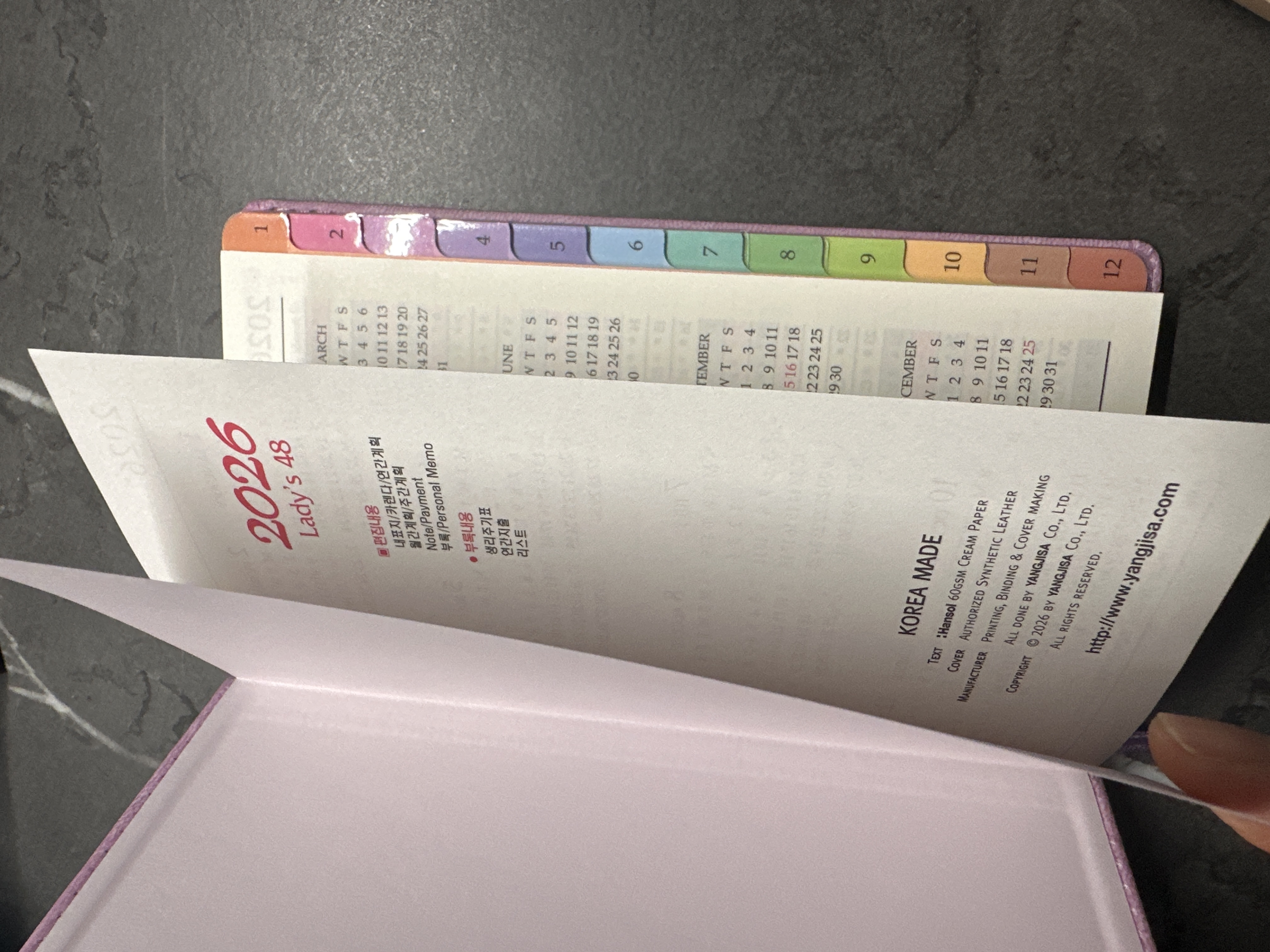 간단하게 메모 하려고 가방에 두고 다니기 너무 좋습니다. 생리주기와 지출목록 작성란 좋구요. 색감이 미쳤어요 너무 예쁜 컬러이고 안에 인덱스가 컬러풀해서 기분 좋고 내지는 말해서 뭐합니까. 팔랑팔랑 얇은데 매력 쩌는 이 종이 얇은 미색인데 모든펜 다 받아주는 이 쫜쫜한 튼튼한 비침 따윈 없는 능력. 모든걸 다 갖춘 핑크에 실버 각인 넘 예뻐여. 여러가지 샀는데 그중에 이게 제일 매력 덩어리네요.