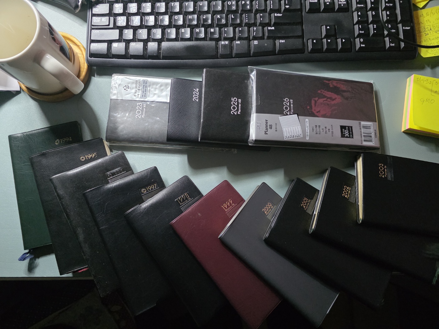 대학교 입학하면서부터 매년 학생수첩을 썻습니다. 학생수첩을 계속 쓰다가 졸업후 만나게 된 수첩이 양지 '플래너 56' 이었습니다. 한쪽 면에는 주간달력이 있고, 다른 면에는 메모를 할 수 있는, 그 구성이 제 메모 습관과 너무 딱 맞았습니다. 이후 매년 10~11월이 되면 수첩을 구매해서 새해를 준비했습니다. 그러다가 푸르덴셜보험에서 고객들에게 제공하는 수첩이 똑같은 구성으로 되어 있는 것을 알게 되었고, 2004년부터 2022년까지는 푸르덴셜 수첩을 사용했습니다. 그런데, 푸르덴셜 수첩은 2023년 KB금융과의 합병으로 고객에게 제공되는 수첩이 간단한 구성으로 바뀌게 되었고, 그 수첩은 제게 더 이상 의미 없는 수첩이 되어버렸습니다. 그리고 다시 만난 것이 '양지 플래너48'입니다. 56에 비해 사이즈가 조금 커졌지만 오히려 손에는 더 잘 맞았습니다. 그래서 2023년 이후 다시 매년 수첩을 구매하고 있습니다. 오늘도 광화문에 있는 교보문고에 가서 직접 '양지 플레너 48'을 들고 왔습니다. 그것도 20%나 할인된 가격으로. 수첩을 구매함으로써 제 마음이 내년을 맞을 준비를 시작했다는 사실에 집으로 돌아오는 길이 무척 뿌듯습니다.