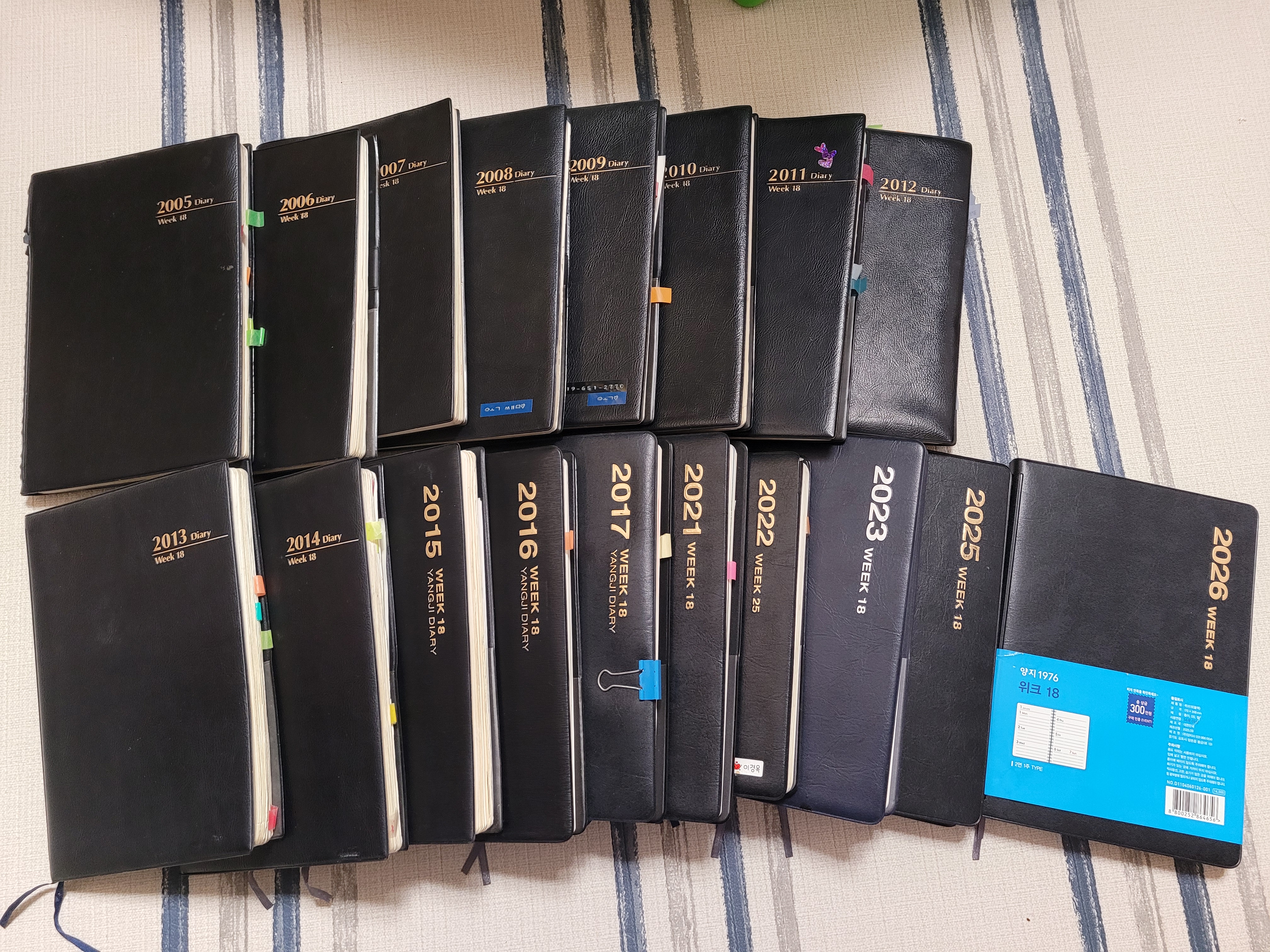 올해도 좋은 한해가 되도록 2026년도 양지 다이어리 위크18에 잘 부탁해봅니다. 되돌아보니 희노애락과 업무가 빼곡한 저의역사네요. 한해를 함께할 최고의 다이어리이며 친구입니다. 앞으로도 쭉~~~ 계속 함께하고 싶습니다. 주단위의 깔끔하고 시각적인 일정 정리에 너무 유용합니다. 감사합니다~