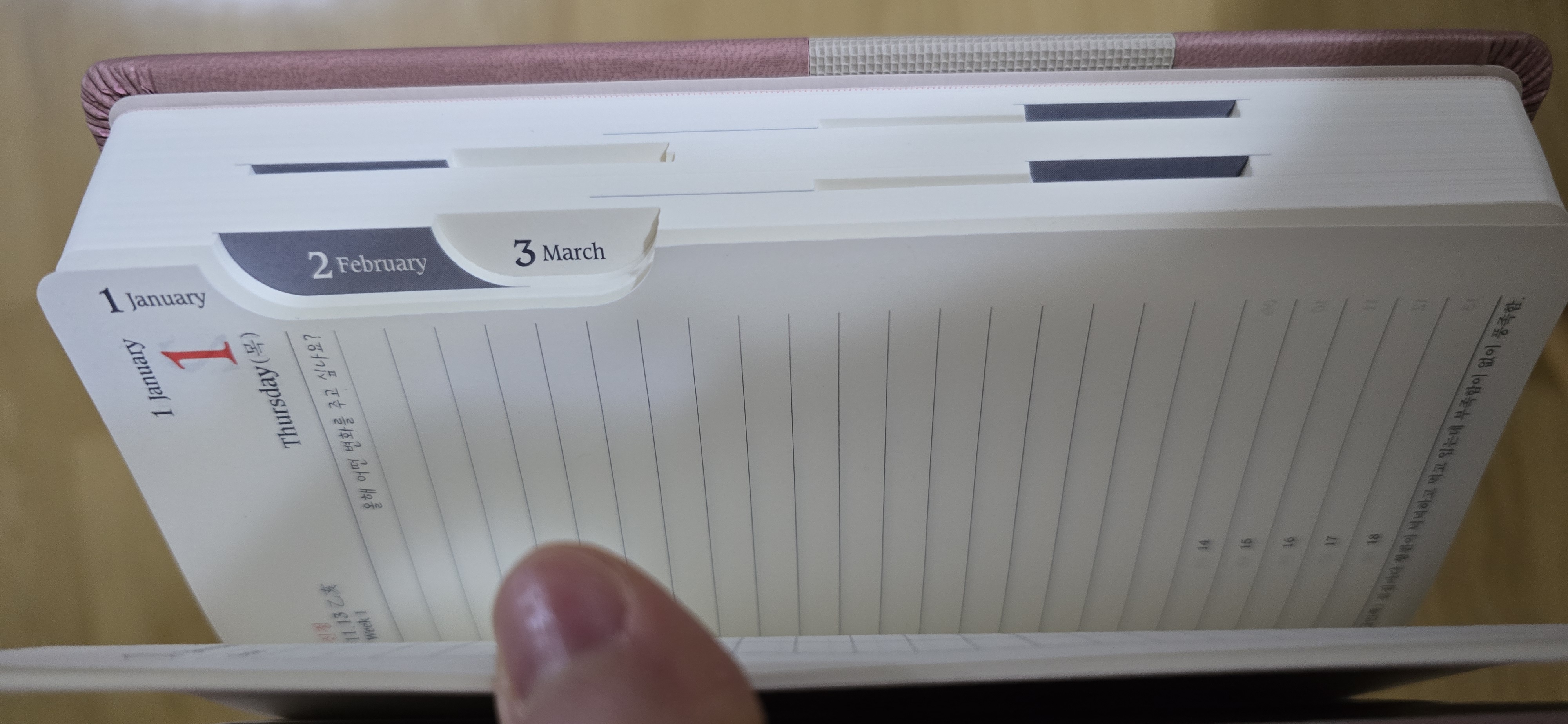 역시나 마음에 듭니다. 손에 잡히는 것도 좋고 구성도 아주 좋습니다. 다만 개인적으로는 펜을 꽂아 다닐 수 있었으면...하는 아쉬움이 듭니다. 가죽도 내지도 전부 마음에 듭니다.