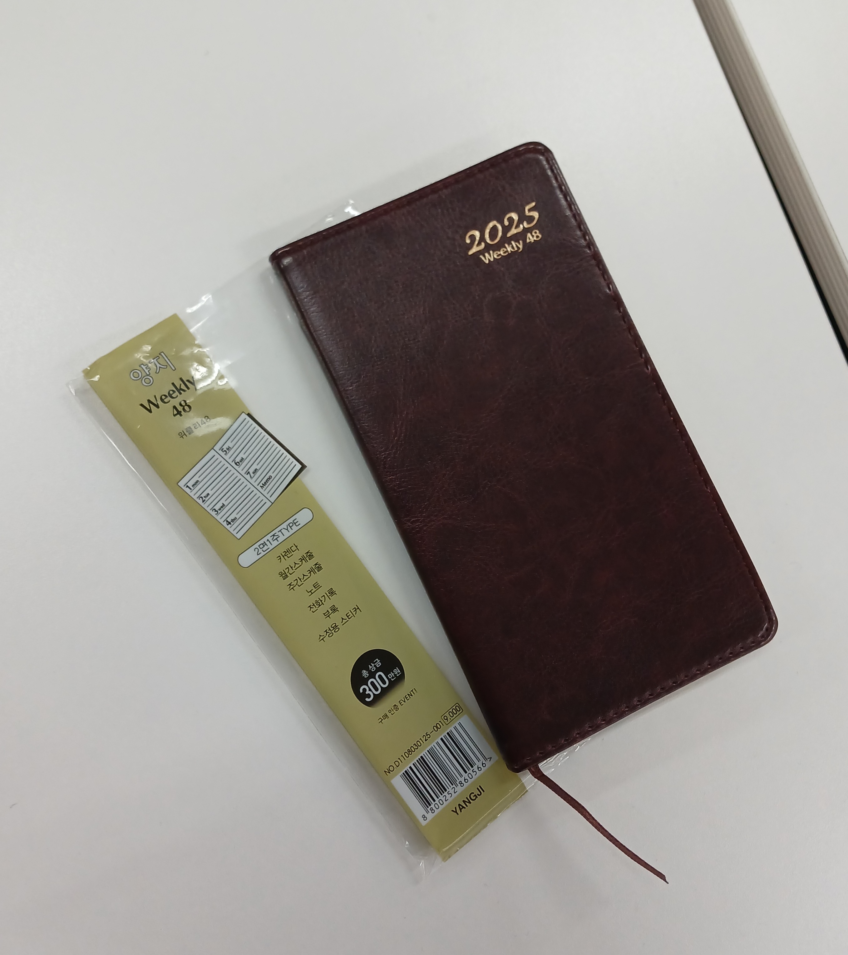 24년에는 플래너 48을 사용했는데...올해는 위클리 48로 바꿨어요...메모 공간이 넓고 주간 이슈를 써넣을 공간이 추가돼서 좋습니다...만족합니다