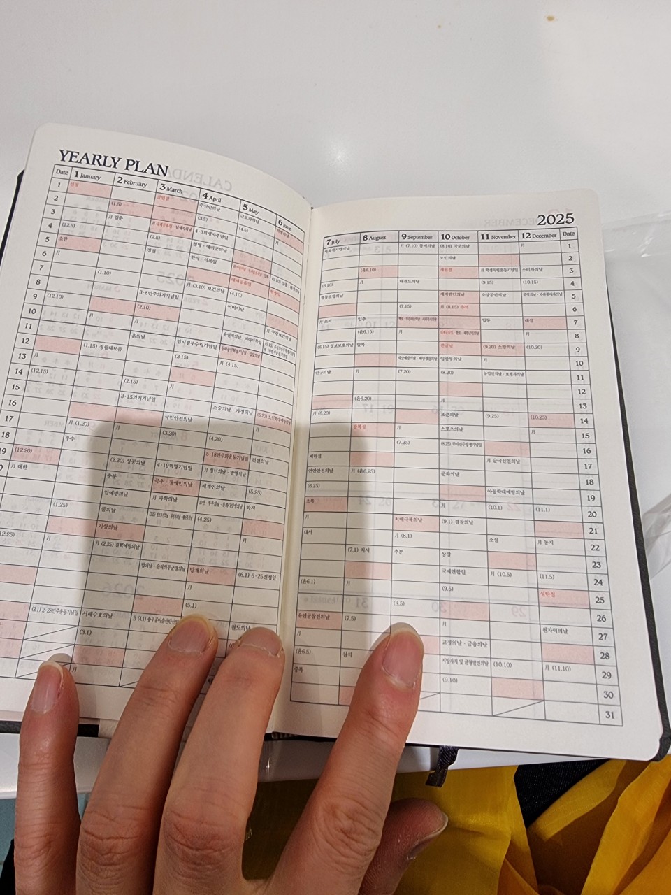 오늘 교보문고에서 퍼스널32 샀어요 기존 유즈어리40이었는데 크기는 거의 비슷한데 달별로 바로 갈수있게 사진처럼 잘려있어요 게다가 매월초에 그 달 해야할 일을 별도로 정리할 수 있어서 좋아요. 보통 1일에다가 정리했는데.. 그럼 1일에 해야할 일들과 해당월에 할 일이 겹쳐 지저분하더라구요. 크기는 약간 커졌지만 만족~