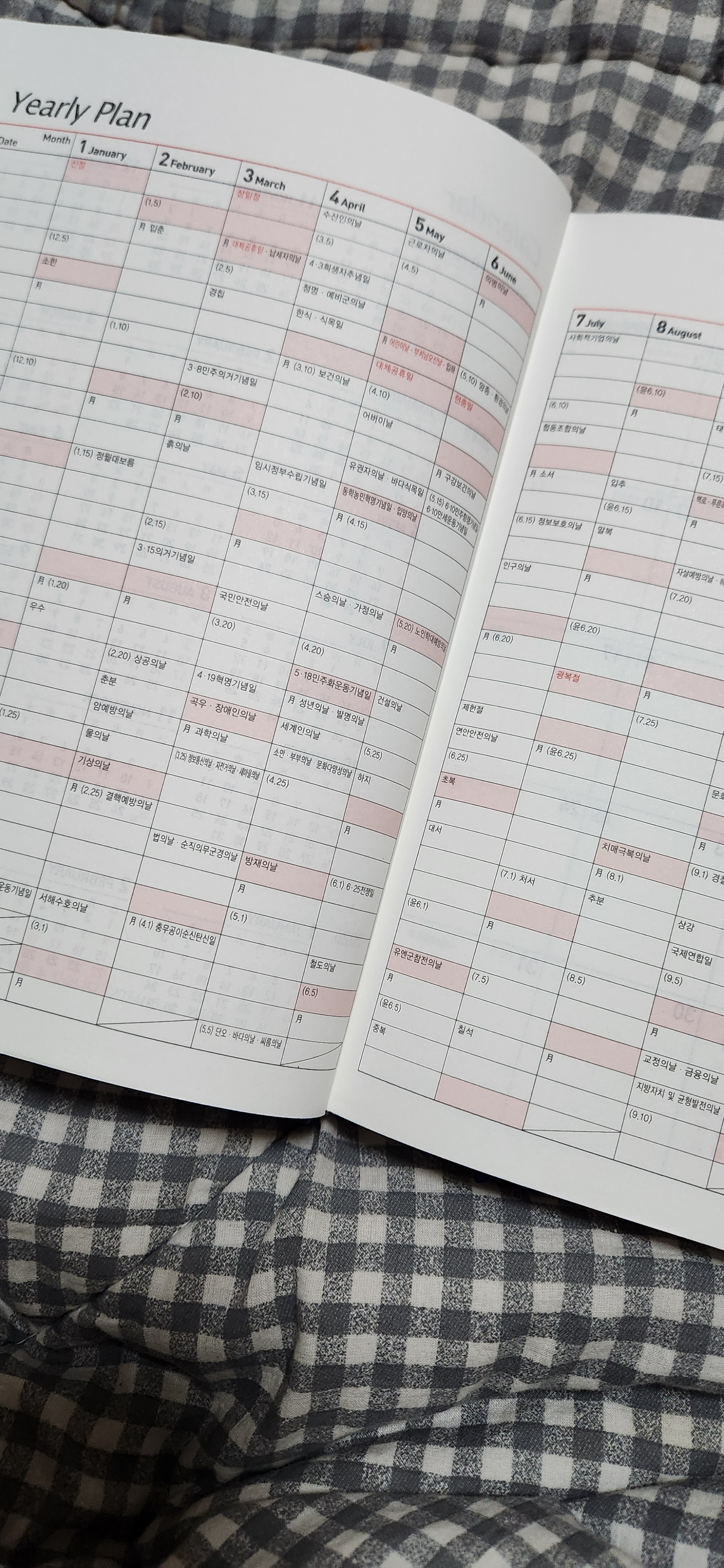 매년, 매일 일기장을 써온 지 16년을 향해 달려 가는 중입니다. 숱하고 지지부진했던 시기를 지나왔다 생각하며 이 시기를 올해로 종지부를 찍고 인생의 새 시즌을 잇고자 어찌 보면 파격적으로 노선을 틀어 보았습니다. 이번 일기장을 사기 위해 구매 기준을 몇 가지 두고 고민을 했는데요 첫 번째 달력 기준으로 시작하는 스케줄을 살 것, 두 번째 가벼운 색상이 아닌 심플하고 무게감 있는 디자인으로 살 것, 세 번째 정말 "한국"적인 느낌으로 돼 있는 걸로 살 것. 이렇게 세 가지 기준을 두고 찾아 보다가 문득 부모님이 쓰셨던 오래 된 양지사 가죽 다이어리가 생각 나 구매하게 되었습니다. 전체적으로 정말 흡족했어요. 요즘 들어 부쩍 국산 애용을 하고 싶어졌는데 이 다이어리를 보니 년간 계획에 국내 기념일과 절기가 쓰여 있었고 하루 한 (면) 장 마다 짧은 명언이 써 있었고 부록에 알찬 정보들이 있어서 엄청 마음에 들었습니다. 정말 우리나라스러움을 느꼈다고 할까요. 디지털 디톡스를 하기 위해 편한 걸 최소화하고 조만간 아날로그로 돌아 갈 계획인데 유즈어리 한 권 갖고 다니면서 지하철 이용 시 스마트폰 화면으로 보는 대신 부록에 실린 지하철 노선도로 확인한다거나 네비게이션에 의존하지 않고 지도 보는 눈을 키워 다시금 책자에 익숙해지려는 노력도 한 번 해볼 수 있어 내년이 참 기대되고 재밌을 것 같습니다. 이 한 권을 마스터해서 어른스러움을 내보일 수 있도록 노력해보겠습니다! 아 그리고 책등에 뱀 캐릭터 귀엽네요 귀여워요